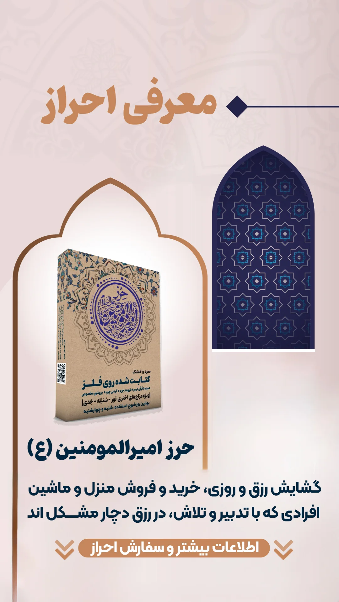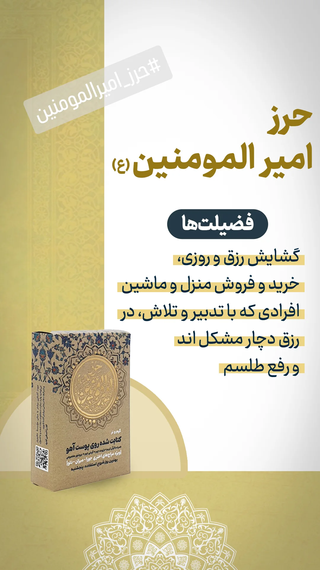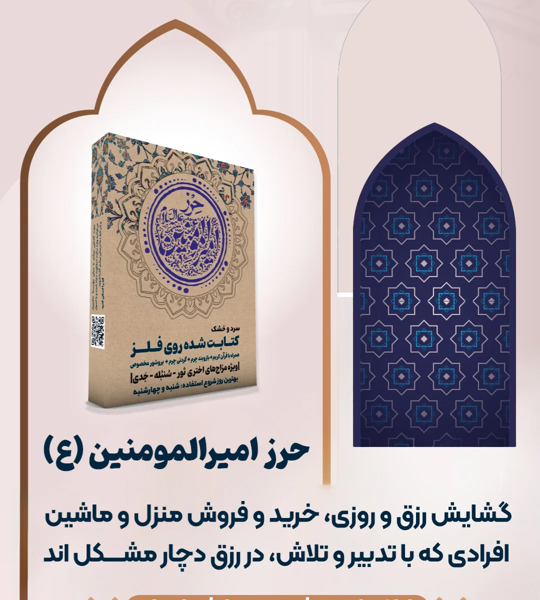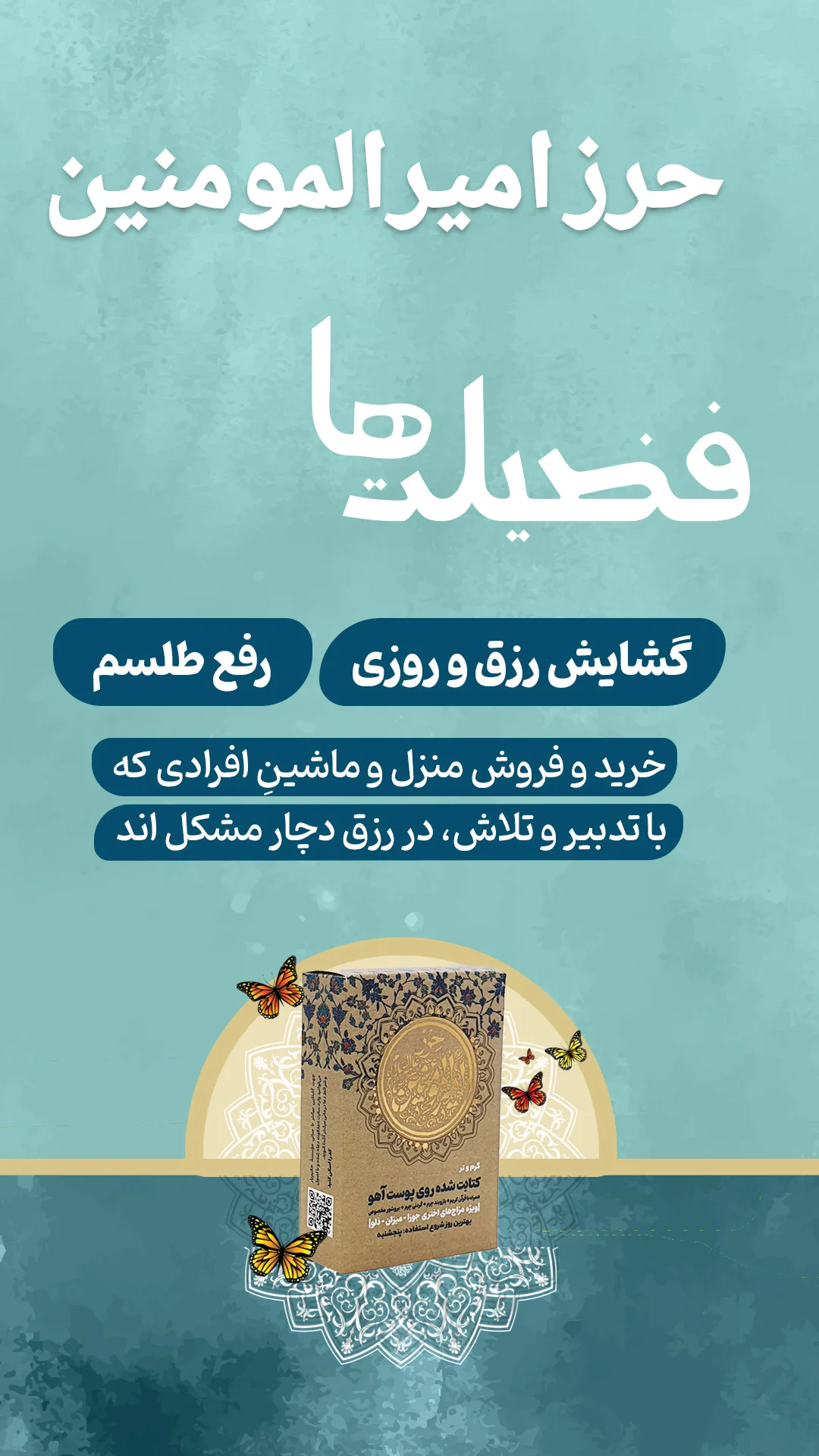 دستهبندی: حرزهاتاثیر: بطلان هر نوع انرژی منفی حتی ....... 2⃣ گشایش رزق و روزی، خرید و فروش منزل و ماشین 3⃣ برای کسانی که با توجه به تدبیر و تلاش در رزق دچار مشکل هستند.سرد و تر: کاغذ مخصوصسرد وخشک: فلزگرم و خشک: پوست آهوگرم و تر : پوست آهومزاج : سردوخشک/سردوتر/گرم و خشک/گرم و ترنمایش بیشتر